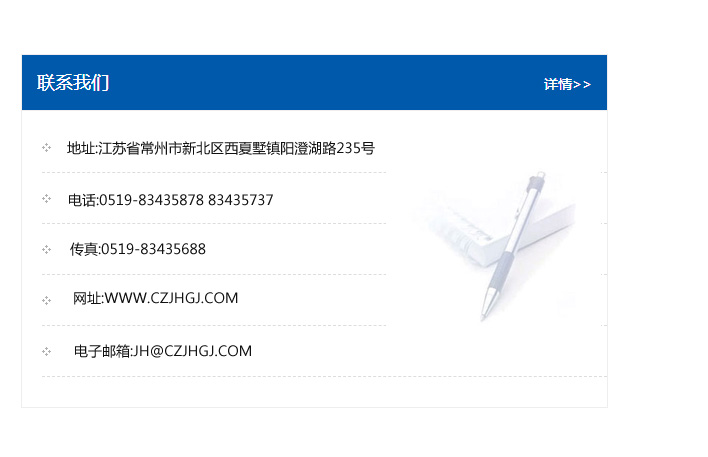 傳真:0519-83435688    郵編:213135    網址:WWW.czjhgj_com.kanghongzheng.com    電子郵箱:JH@czjhgj_com.kanghongzheng.com